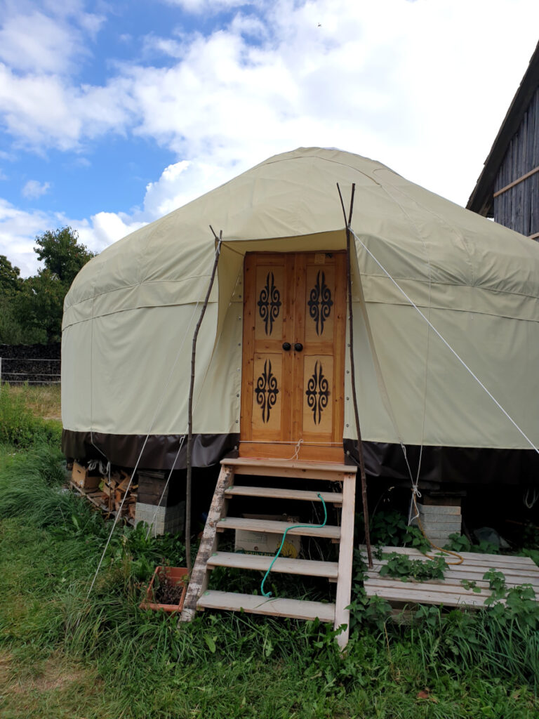 Seit kurzen hat Yola im Garten eine kirgisische Jurte mit Holzboden aufgebaut.